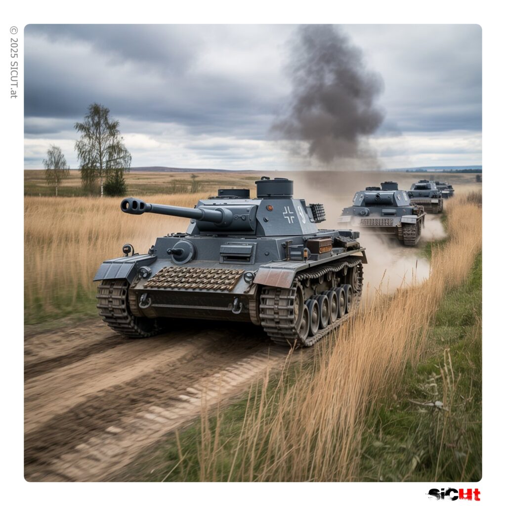 Und so steht Barbarossa plötzlich da wie ein schlecht programmiertes Videospiel, in dem die Figuren in die falsche Richtung laufen. Die Wehrmacht marschiert – zack! – nicht nach Osten, sondern Russland führt, ganz offenbar, einen überraschenden Frühschoppenfeldzug gegen das Deutsche Reich. Die Panzer rollen nicht über ukrainische Felder nach Stalingrad, nein, sie werden mit ostslawischer Frechheit Richtung Berlin geschubst, während sich die Wehrmacht vermutlich damit beschäftigt, Schutzbunker in Königsberg zu streichen.
